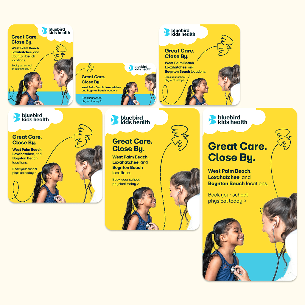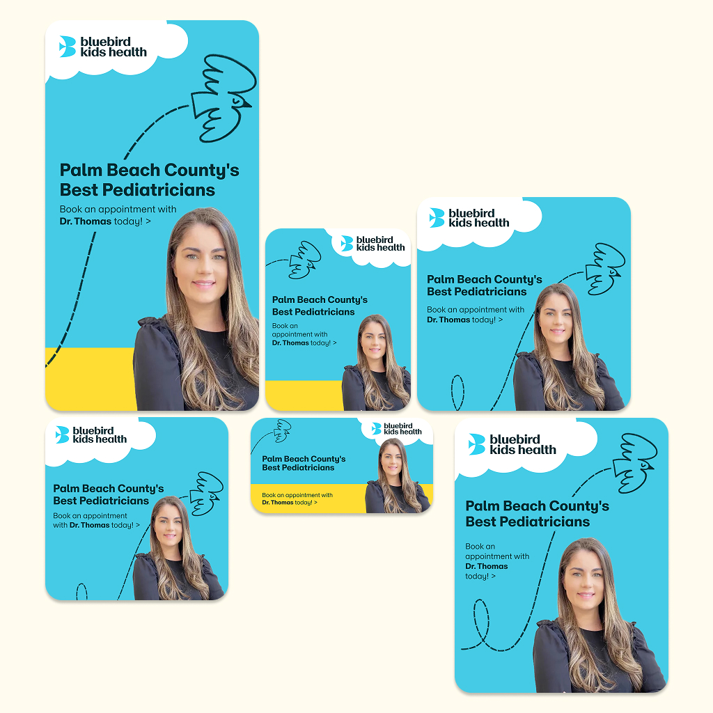 While working at Designity, I collaborated with Bluebirds Kid’s Health on their rebranding initiative. My role involved applying their refreshed identity across a wide range of print and digital touchpoints, including multilingual posters, brochures, pamphlets, flyers, and HTML ads. The goal was to create cohesive, accessible, and family-friendly communications that reflected the organization’s mission of supporting children’s health and well-being.