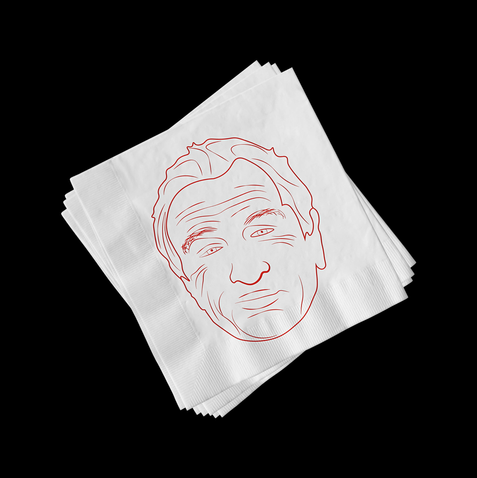 Napkin featuring an illustration of Robert de Niro.