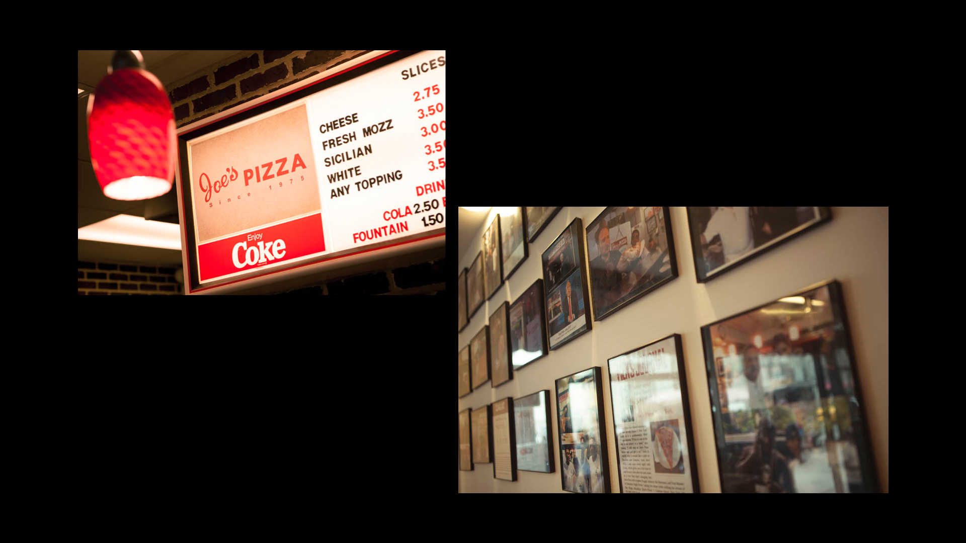 Photos of the menu and the photographs hung up at Joe’s.