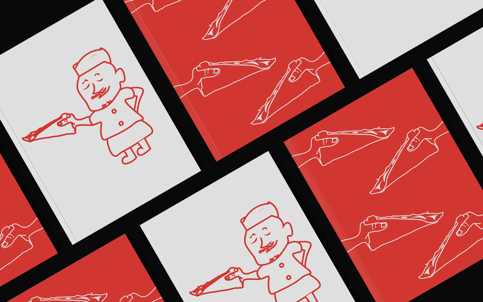 Menu designs featuring the signature Holder and the characterised Joe.
