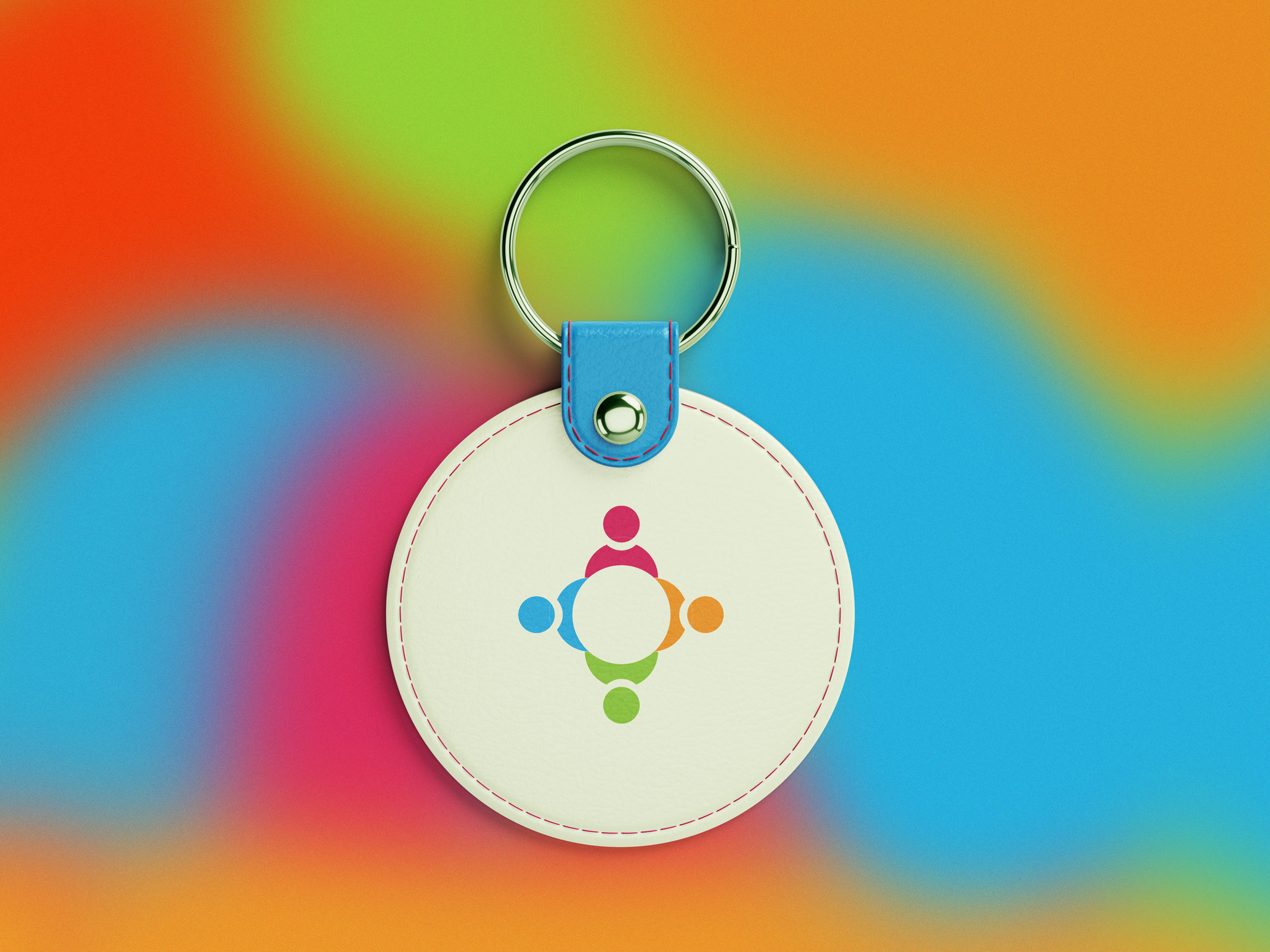 Leather keychain mockup featuring the Community icon.