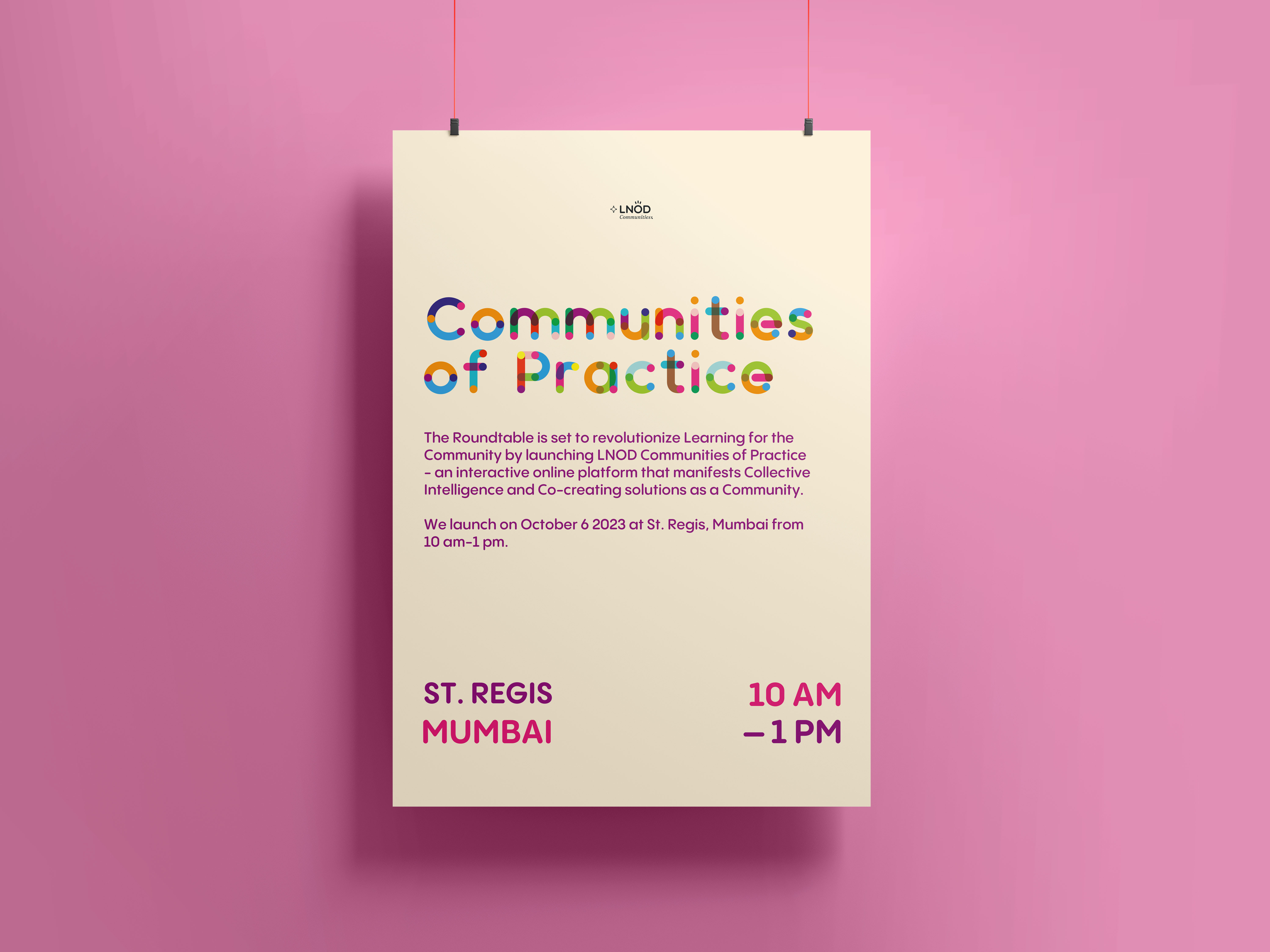 Hanging poster mockup for an LNOD event.