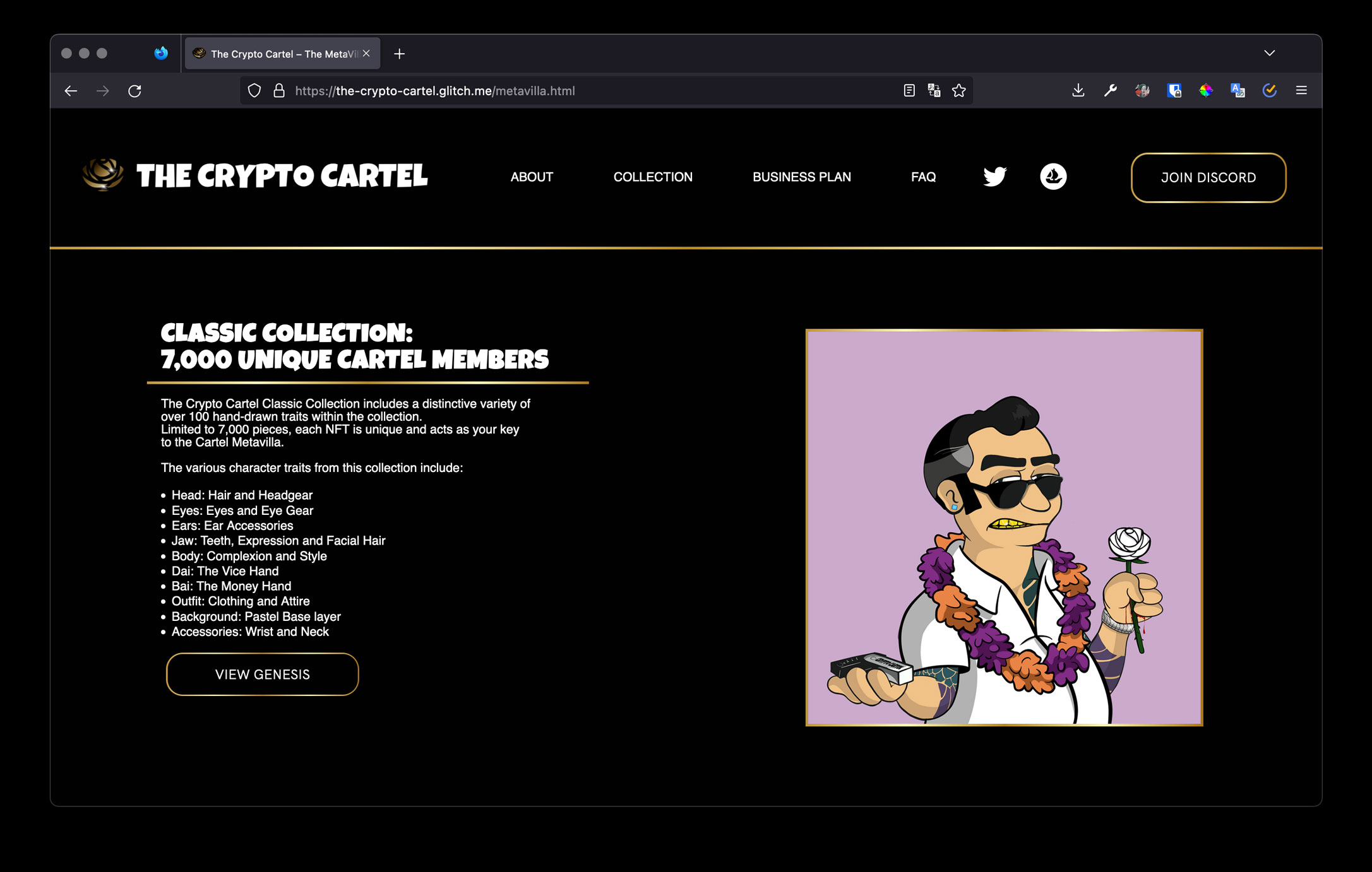Classic collection section of the Crypto Cartel website.