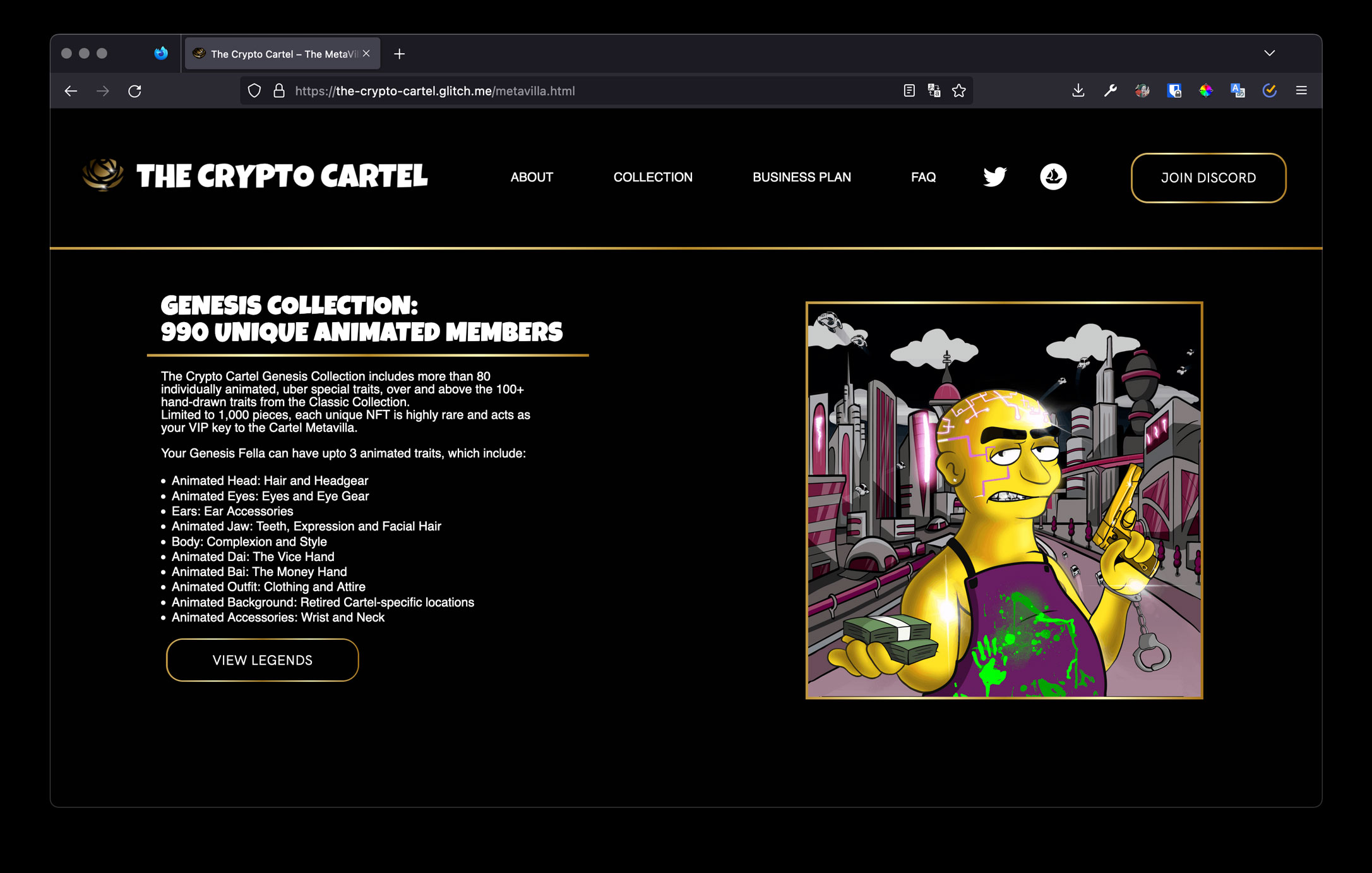 Legacy Collection section of the Crypto Cartel website.