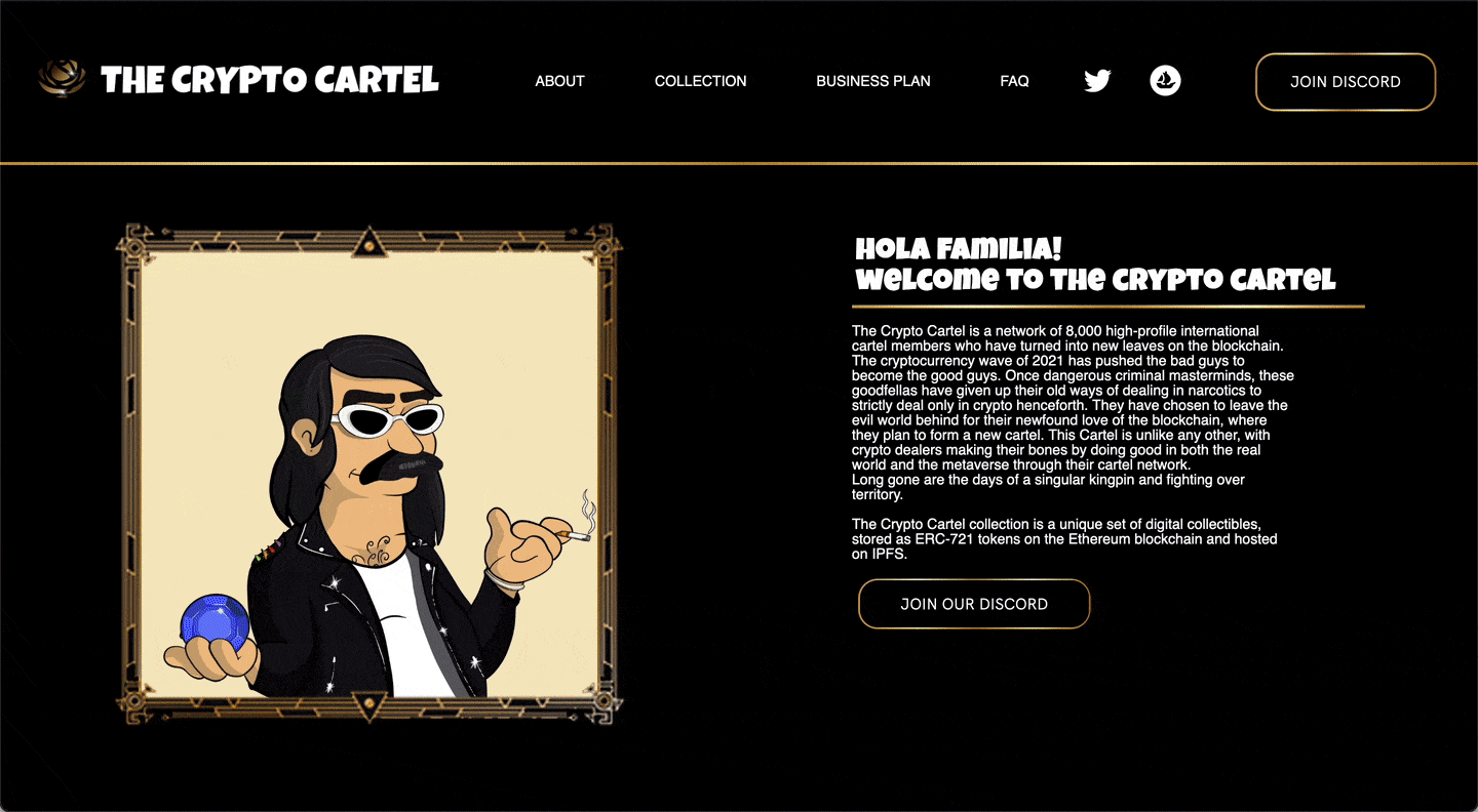 Landing page of the Crypto Cartel website.